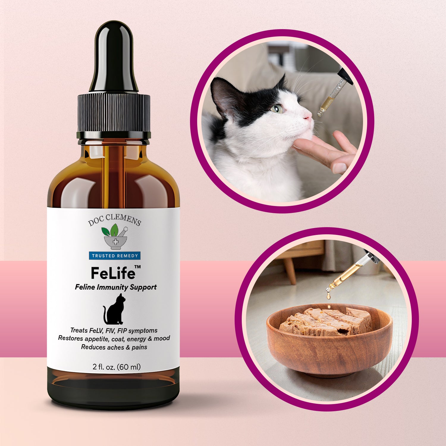 FeLife® is an all-natural, homeopathic immune support formula created to help reduce FeLV viral load and support better day-to-day quality of life in FeLV+ cats.