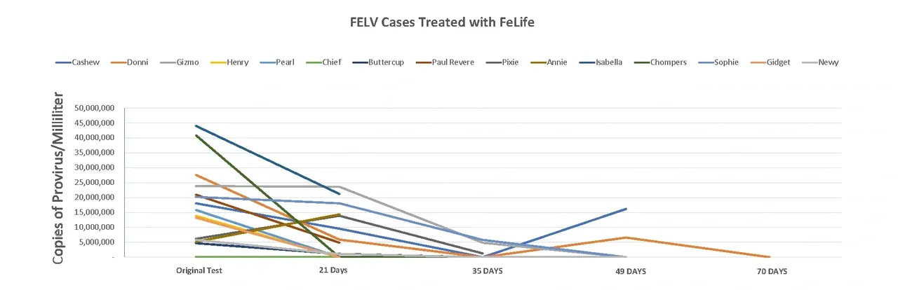 The proof is in the test results. We encourage you to monitor your cat's FeLV reduction while treating. Consult your vet for testing or test at home.